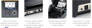 Δέχεται μεγάλα ρολά ετικέτας και μελάνης για την κόμπακτ του σχεδίαση συνδυάζοντας αυτονομία εργασίας με λιγότερους χρόνους πάυσης για αντικατάσταση αναλωσίμων υλικών .- Μοντέρνος σχεδιασμός σε σχήμα ομοιόμορφου κελύφους διευκολύνει την τοποθέτηση ετικετών και ταιριάζει σε περιορισμένους χώρους εργασίας.